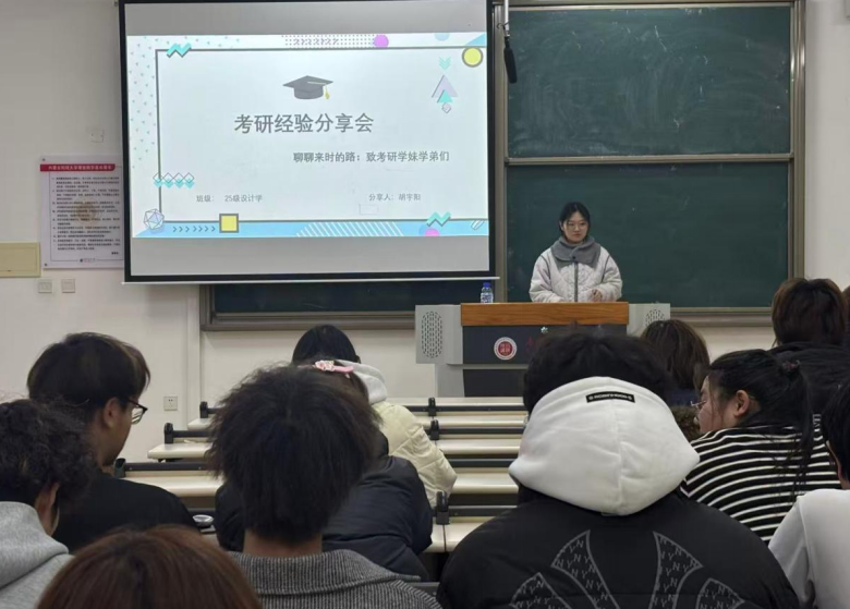 本次活动由25设计学研究生郑昕蕾、王凤杰、胡宇阳三位同学进行讲解,她们分别就产品设计、环境设计的专业学习以及设计类考研规划与安排进行了讲解。让同学们正确把握专业的学习方法,了解考研方向,并提前做好大学的生涯规划。