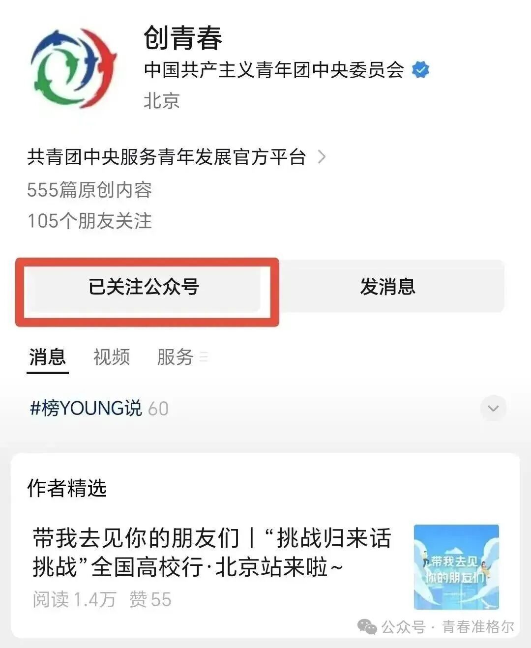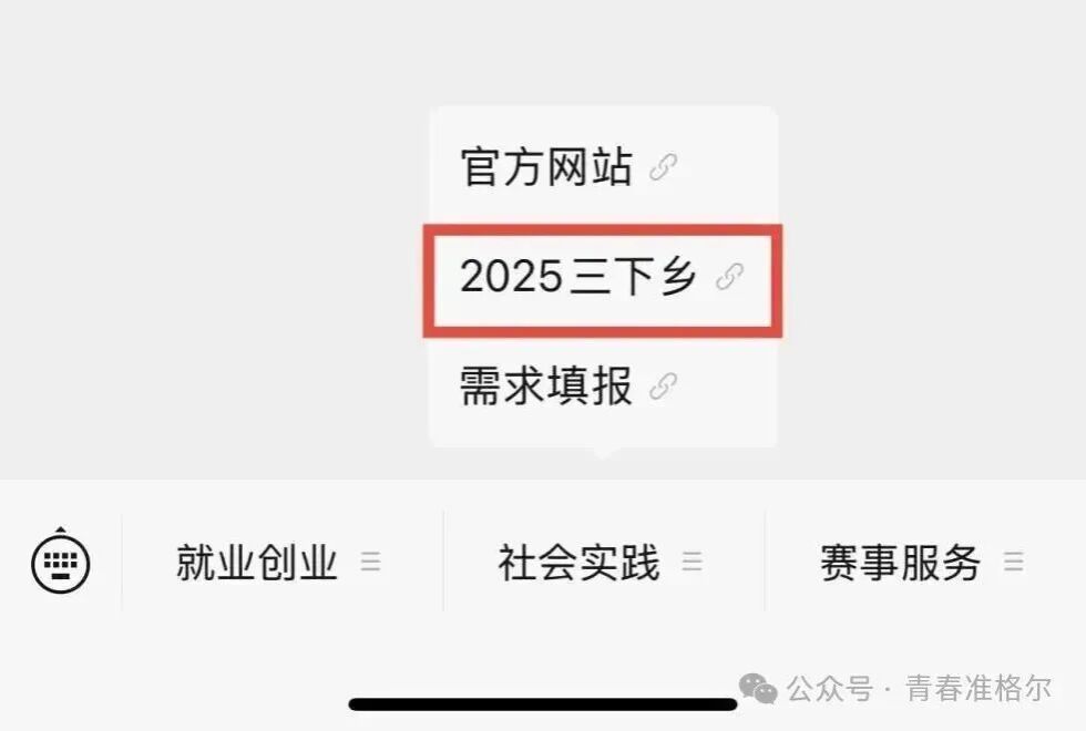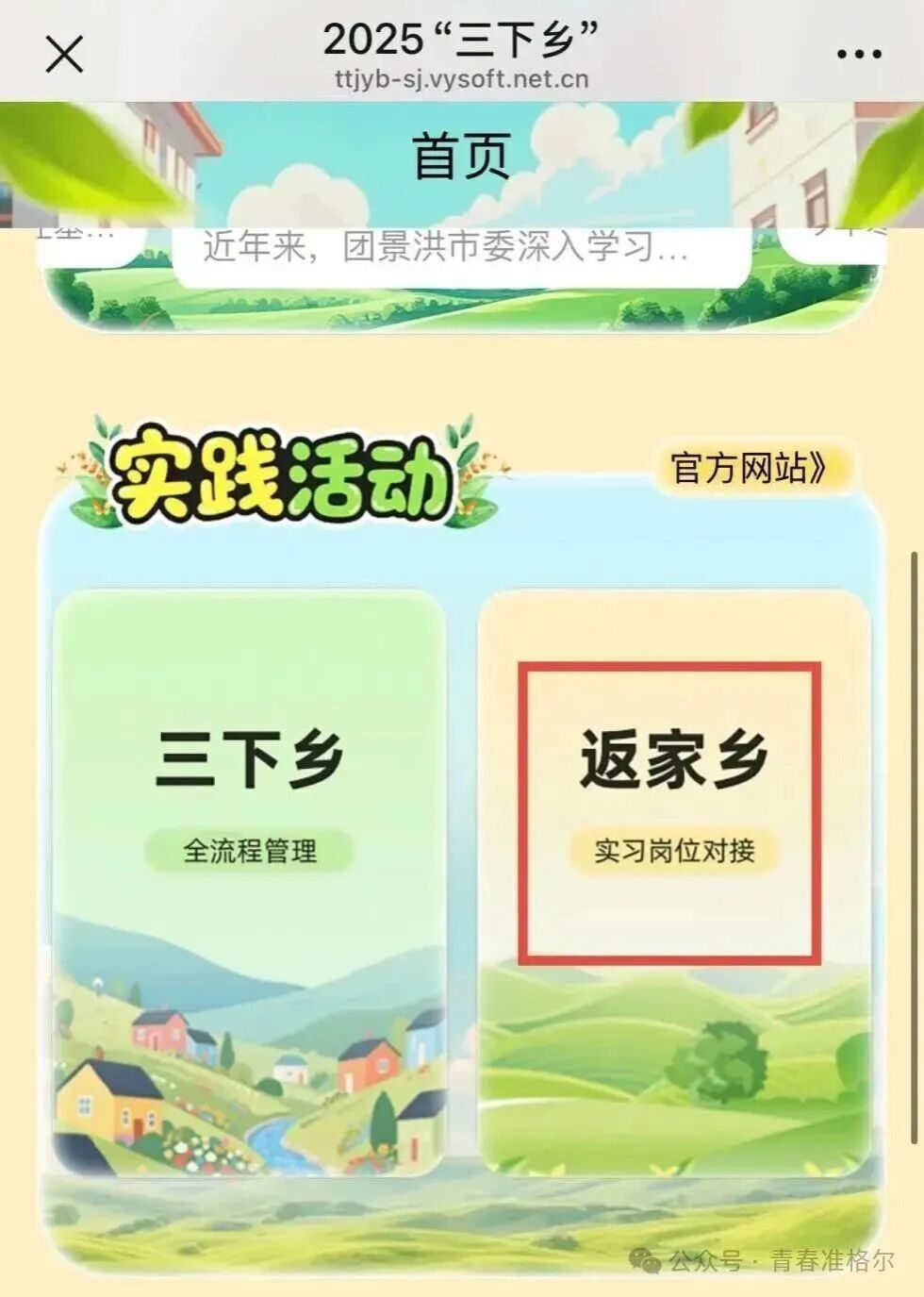 有意向的大学生结合自身实际情况,关注“创青春”微信公众号,选择“服务平台”-“社会实践”栏目,进入小程序,并根据系统提示进行注册、登录、报名,报名截止时间2025年12月31日。(具体流程如下)