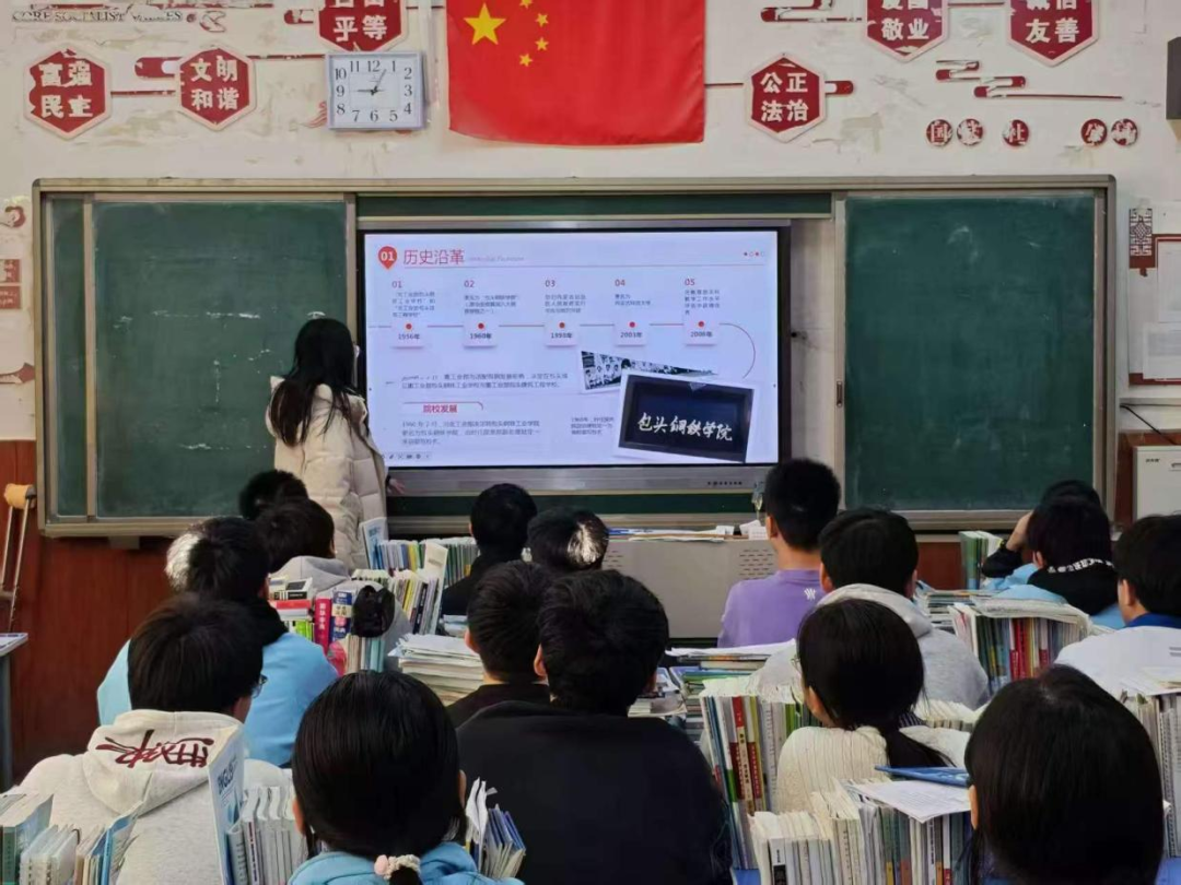 大一学子张志欣重返高中母校赤峰市新惠中学,在曾经的班主任班级开展主题宣讲活动,以校友身份分享成长感悟,解读高校特色,并为高三学子送上带有学校标识的纪念品与高考祝福。